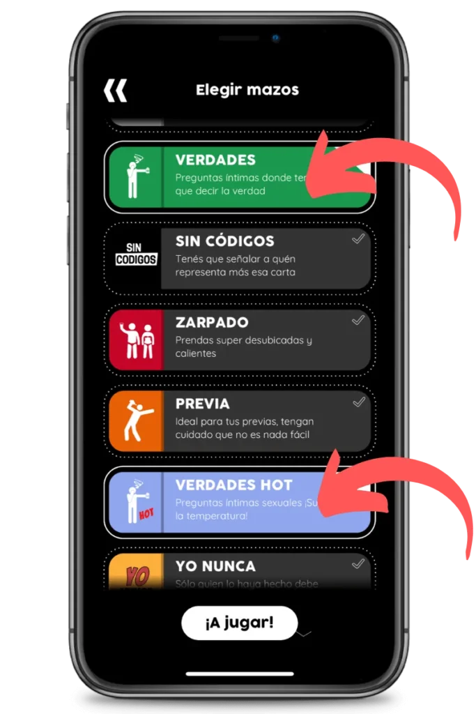 Cuenta tambien con una categoria de preguntas hot, donde son todos temas mucho mas subidos de tono y seguramente mas incomodos pero es ideal para jugarlo en una cita, en alguna previa con personas que te gustan o amigos que no tengan verguenza.